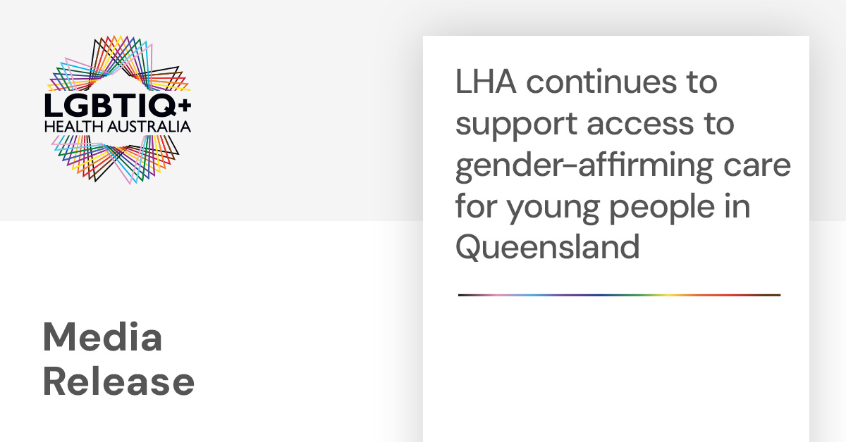 As the national peak body for LGBTIQ+ health and wellbeing, LHA is committed to working constructively with governments, including Queensland Health, to support inclusive health systems that optimise health outcomes for LGBTIQ+ people. LHA stands ready to support the timely restoration of safe and affirming services for trans and gender-diverse young people in Queensland.
