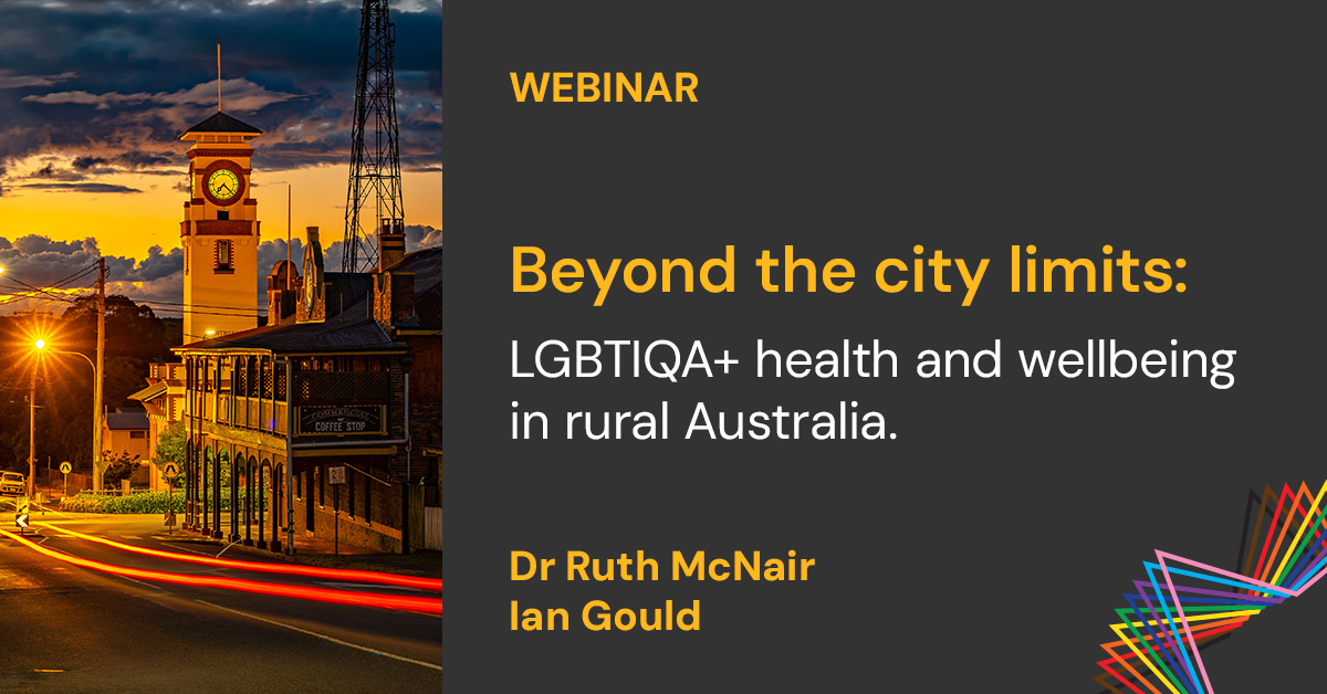 On October 9, 2025, LGBTIQ+ Health Australia hosted a webinar exploring the findings of The Health and Wellbeing of LGBTIQA+ People in Rural Australia, a comprehensive review that highlights the health disparities, barriers to care, and opportunities for change affecting an estimated 340,000 LGBTIQA+ people living in regional, rural, and remote areas of Australia.